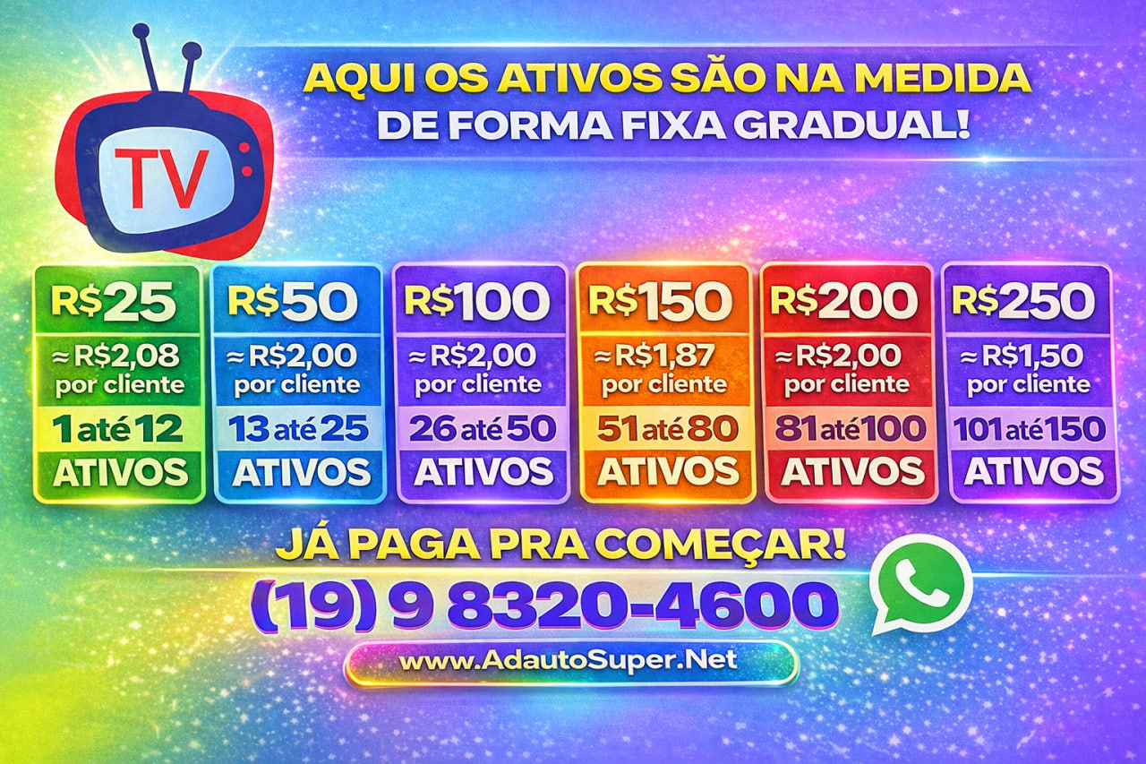 R$ 25,00 = DE 1 ATÉ 12 ATIVOS
